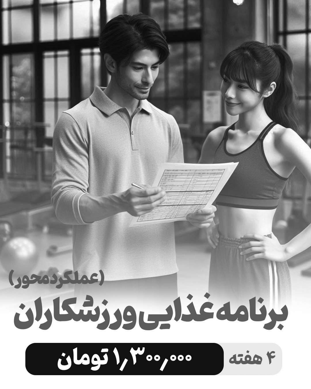 - طراحی برنامه غذایی تخصصی: با توجه به سطح ورزشکار، ساعت تمرین، ساعت کار و ساعت خواب و بیداری.